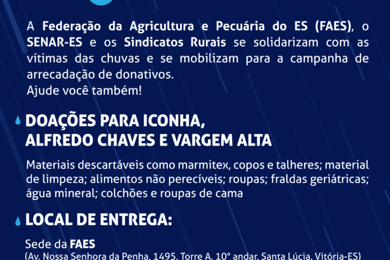 Em decorrência das fortes chuvas que atingiram o Sul do Espírito Santo na sexta-feira passada, 17 de janeiro, a Federação…