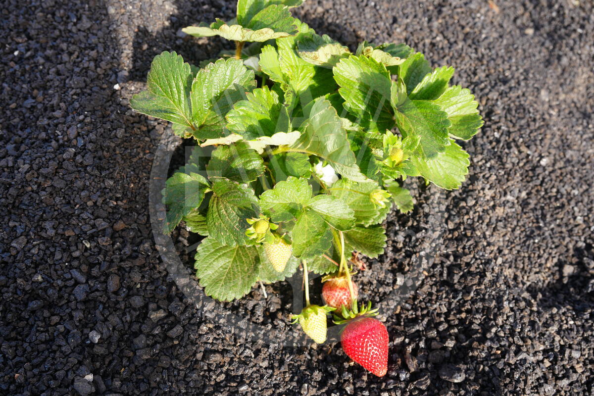 Morangos orgânicos crescem em solo vulcânico, cultivados pela técnica “enarenado”. Foto: FAO/Lis Sánchez
