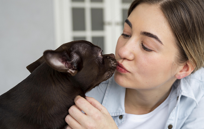 Apesar de parecer um gesto de amor, lambida na boca, na face ou no nariz, pode esconder riscos à saúde (Foto: Freepik-Divulgação)