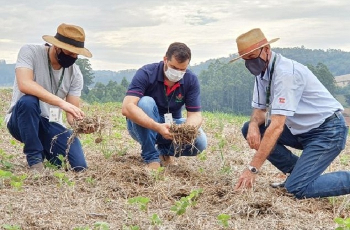 A propriedade é uma unidade de referência técnica da Epagri na região em conservação do solo. De acordo com Marcelo Bassani, extensionista e organizador da produção audiovisual, a família Golin não mede esforços para conservar o solo e manter a água na lavoura.