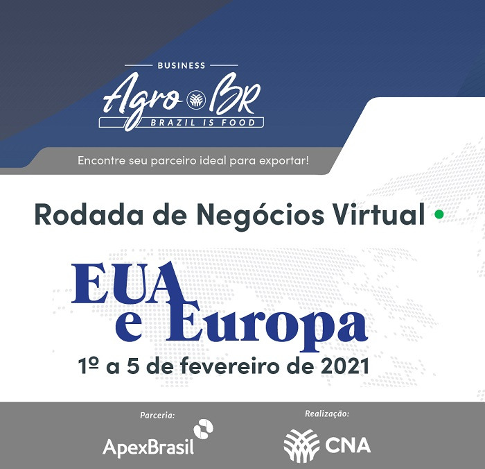 As reuniões virtuais, que ocorrem até sexta (5), serão organizadas pela Confederação da Agricultura e Pecuária do Brasil (CNA), em parceria com a Agência Brasileira de Promoção de Exportações e Investimentos (Apex-Brasil).