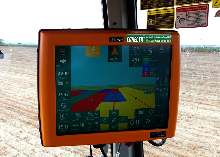 Atualmente, existem equipamentos agrícolas com sistemas eletrônicos que permitem variar, em tempo real, as quantidades de fertilizantes conforme a necessidade em diferentes partes de um talhão de cultivo, o que viabiliza a automação do manejo baseado na adubação de restituição Foto Álvaro Resende/Embrapa/Divulgação
