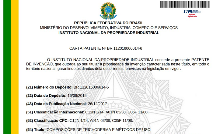 O pesquisador da Embrapa Meio Ambiente Gabriel Mascarin, um dos inventores da tecnologia, explica que a patente da Embrapa introduz uma alternativa tecnológica ao revelar, pela primeira vez, a produção de microescleródios de Trichoderma por fermentação líquida submersa — algo até então descrito apenas para fungos patogênicos de plantas. Essas estruturas são altamente resistentes à dessecação, persistem no solo por longos períodos e, quando reidratadas, germinam e produzem conídios, mantendo todas as propriedades fungicidas do organismo original.