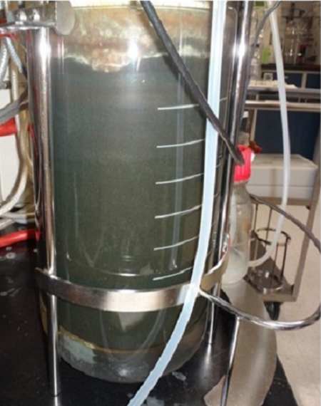 Trichoderma produzido em biorreator de bancada. Foto: Nice Koboti