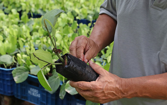 A estaquia é uma técnica de reprodução a partir da retirada de pequenos galhos das plantas, chamados estacas. Uma vez enraizadas, as estacas se tornam novas mudas de pimenteira-do-reino. Um dos gargalos da agricultura familiar, de acordo com os especialistas, é o baixo índice de “pegamento” dessas raízes, ou seja, elas não crescem o suficiente para promover o desenvolvimento da planta.