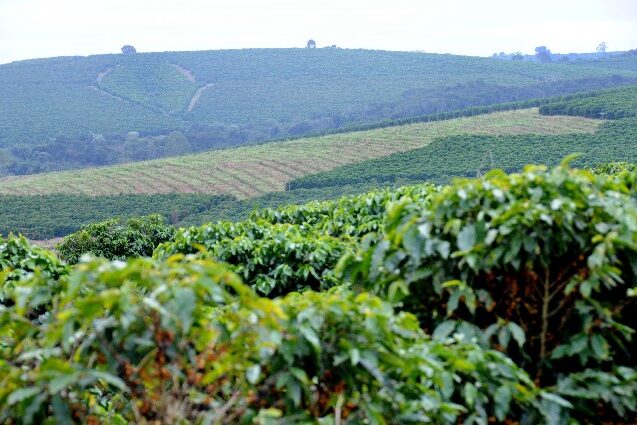 Quando grande, o arroz serve de palhada e traz alto índice de nitrogênio para produção de café. Na imagem cafezal…