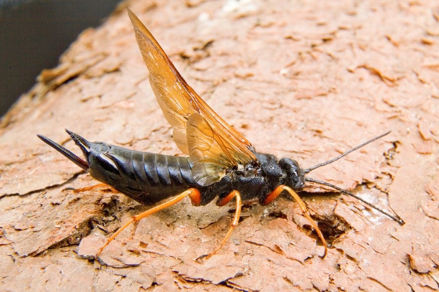 O ciclo de infestação começa de forma quase imperceptível. As fêmeas da vespa perfuram o tronco das árvores para depositar ovos, junto com uma substância tóxica e um fungo.