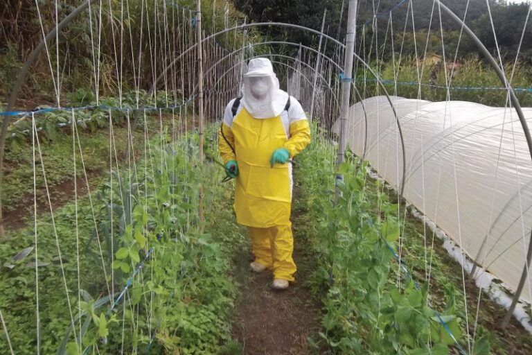 Com auxílio de um EPI, o produtor faz a pulverização do Agrobio nas hortaliças – Foto: Paulo Filgueiras Fertilizante natural,…