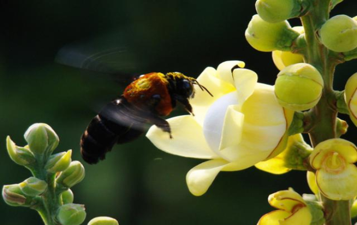 Abelhas nativas solitárias polinizando. Foto: Ronaldo Rosa/Embrapa