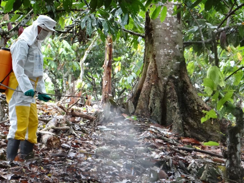 Pulverização do Tricovab® sobre as vassouras-de-bruxa removidas e deixadas na serrapilheira dos cacaueiros – Foto: João Bomfim Costa Liberado primeiro biofungicida contra a vassoura-de-bruxa do cacaueiro O Ministério da Agricultura, Pecuária e Abastecimento (MAPA) acaba de conceder o registro definitivo do primeiro fungicida microbiológico para combater o fungo Moniliophthora perniciosa, agente causal da vassoura-de-bruxa do…