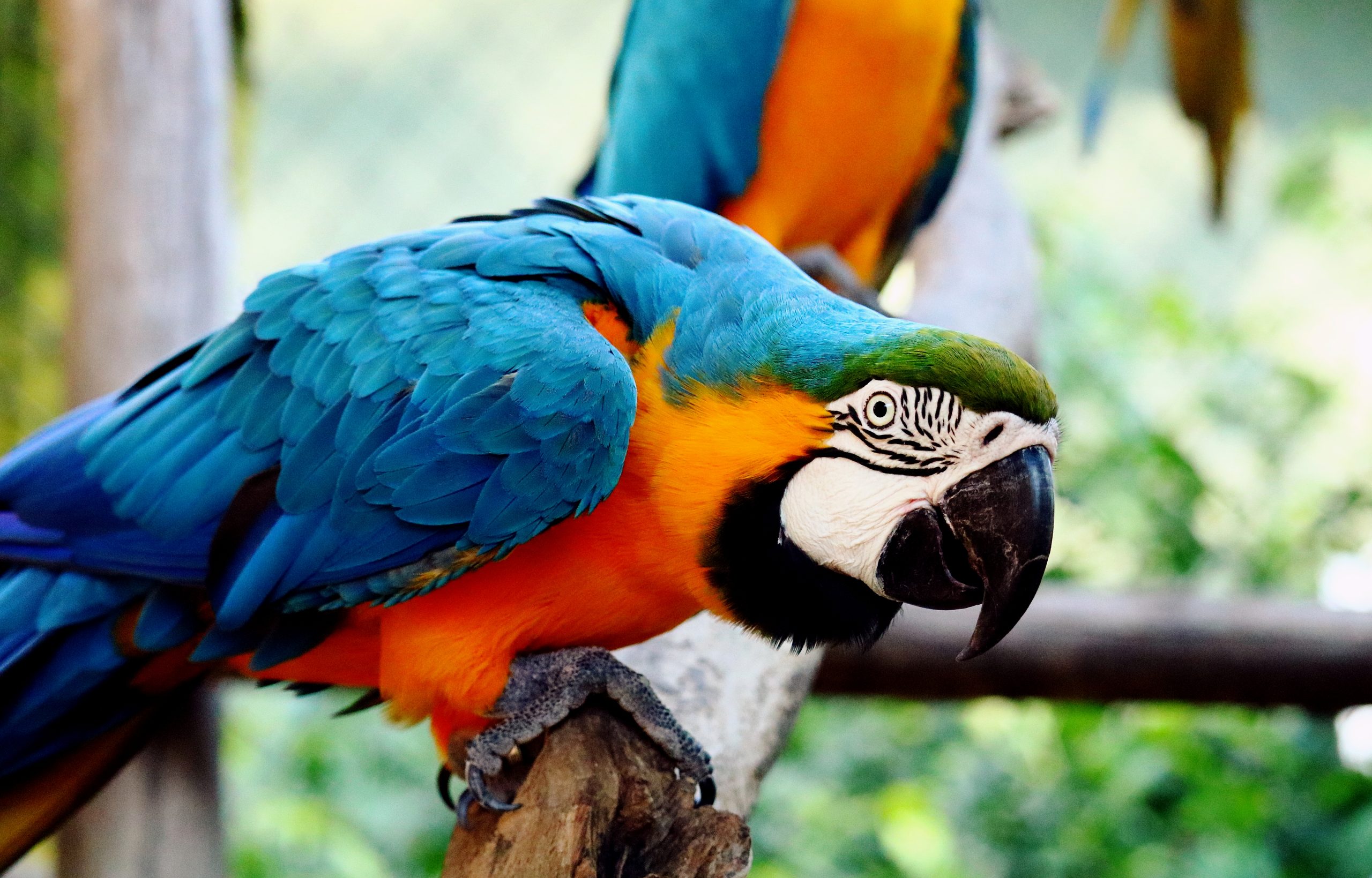 Dodó é uma arara-vermelha que sofreu maus-tratos pelo tráfico, ela não voa e é cega dos dois olhos.