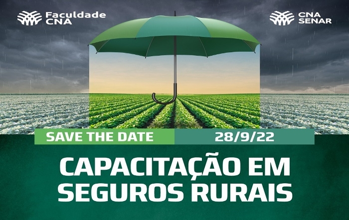 A Confederação da Agricultura e Pecuária do Brasil e a Faculdade CNA lançam, na quarta (28), uma capacitação online em seguro rural para produtores, peritos, corretores e profissionais de instituições financeiras.