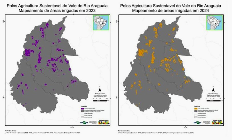 O mapeamento no polo de irrigação Central de Goiás mostrou aumento de 7 mil hectares nas áreas irrigadas, de 2023 para 2024. Houve crescimento da área irrigada nos 24 municípios que integram a região.