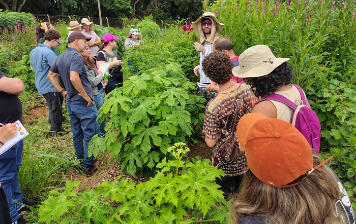 A programação incluiu visitas práticas e técnicas às áreas de cultivo, onde os participantes puderam conhecer diferentes espécies e variedades, seus usos alimentares e as principais formas de propagação. Também foram discutidos arranjos produtivos integrados, como o cultivo consorciado de mandioca em faixas rotativas, apresentado por Marcelo Ribeiro Romano, da Embrapa Mandioca e Fruticultura.