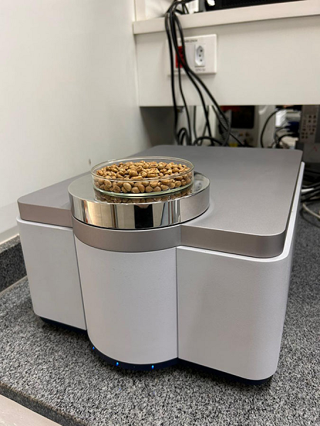 Análise de grãos de café Amazônico sendo realizada no equipamento de infravermelho próximo NIR de bancada. Foto: Michel Rocha Baqueta